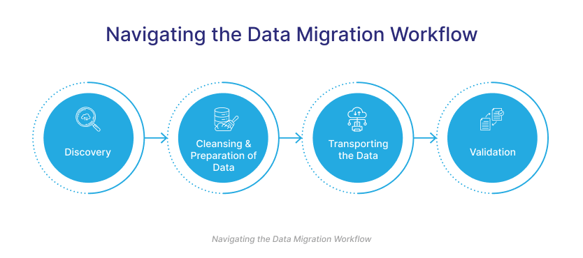 تبدأ عملية نقل البيانات بمساعدة منصة آلية أو منصات متكاملة. تُنقل البيانات لتتوافق مع المخطط المستهدف، وتُحفظ لأغراض الأمان، أو تُرسل عبر مسارات مختلفة لمعاينة سير العمل. يتم إبلاغ الجهات المعنية مسبقًا لضمان الحد الأدنى من وقت التوقف. يُستمر في مراقبة البيانات المنقولة للتحقق من وجود أي مشكلات في الوقت الفعلي واتخاذ إجراءات سريعة.